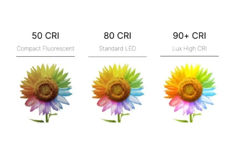Chỉ số Hoàn màu (CRI): Nên chọn đèn có CRI>80 để đảm bảo màu sắc vật thể được tái tạo chân thực nhất.