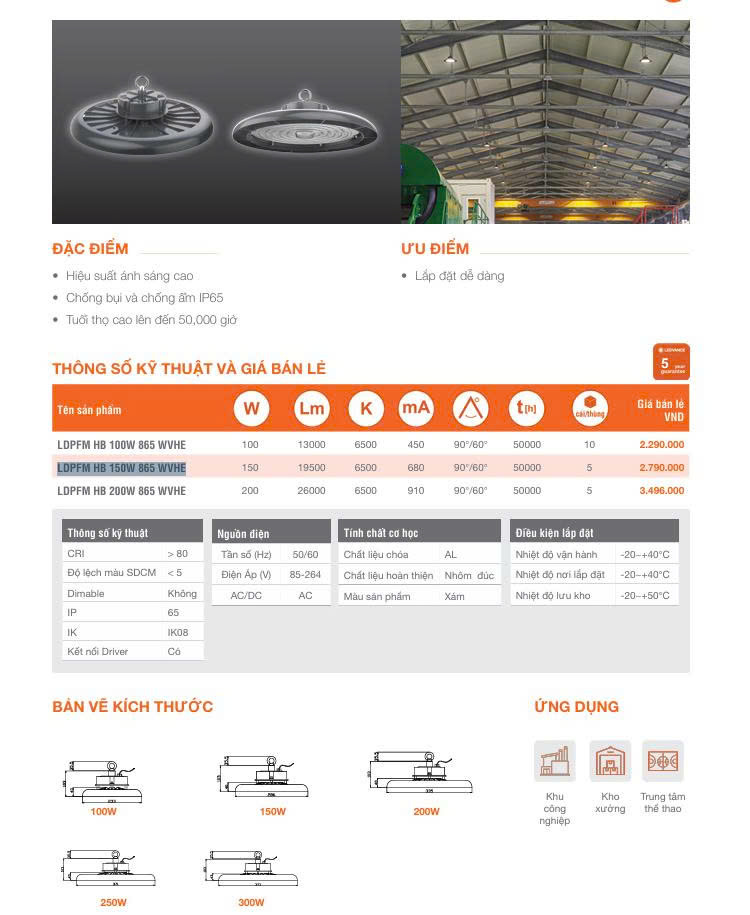 Thông số kỹ thuật Đèn LED Highbay LDPFM HB Osram